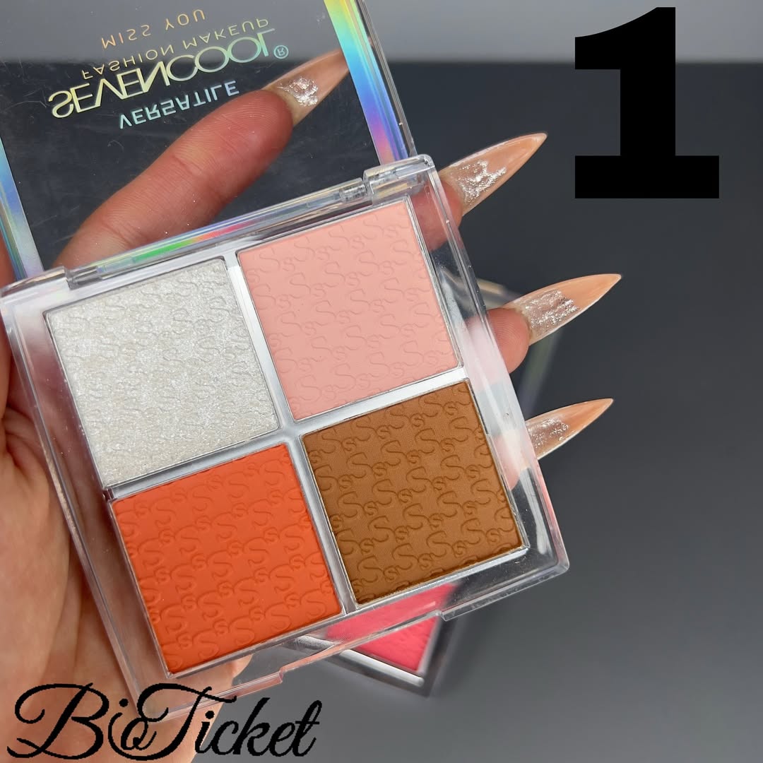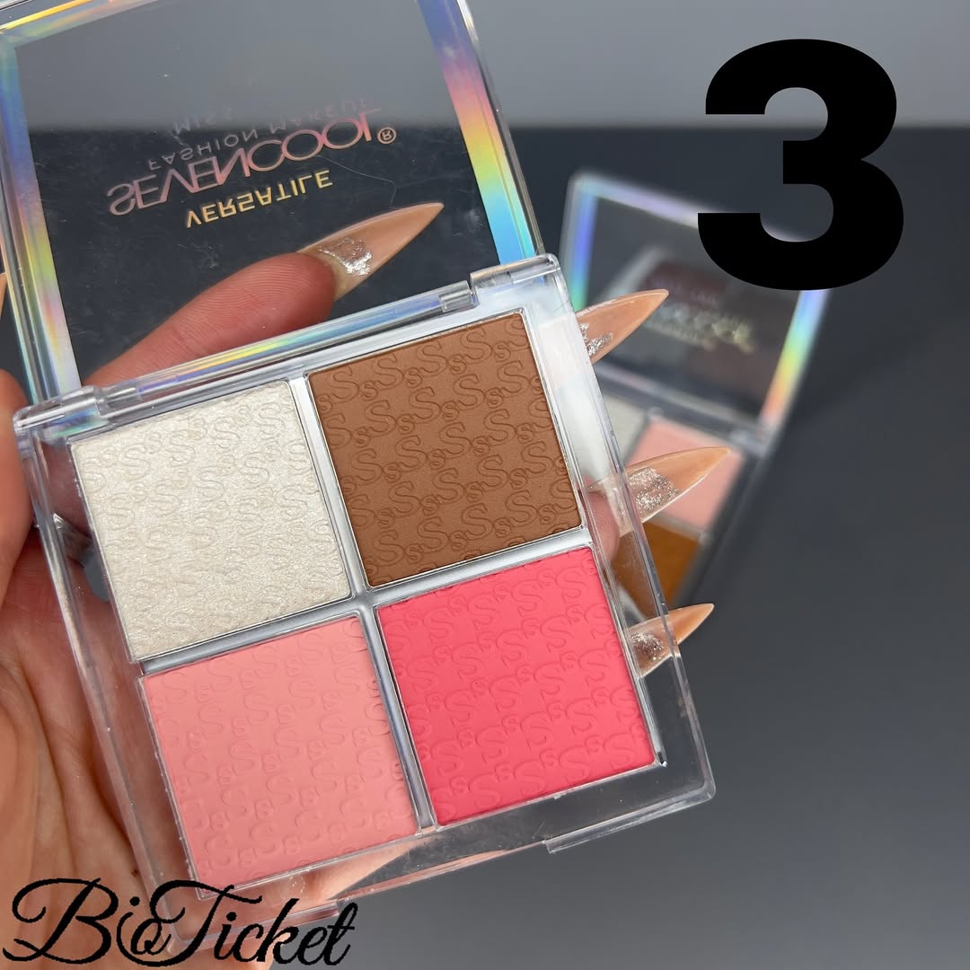 سایه و رژگونه و هایلایتر با رنگ های شاین و ساده و پیگمنت رنگی بالا.
